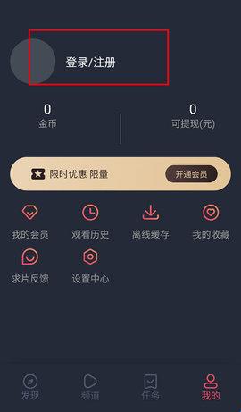 1、打开用户刚下载好的泰剧兔,点击最上方的“登录/注册”按钮进入。
