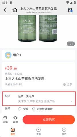 2、点击商品进入购买界面,向下滚动至配送信息部分。