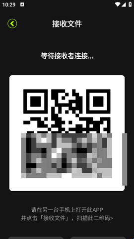 4、然后在另一台设备上打开该APP,点击【接收文件】,去扫描该二维码,就能成功接收了。