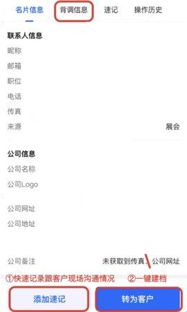 3、与名片匹配的信息会显示在下方,点击【转为客户】即可完成建档。