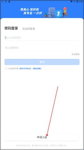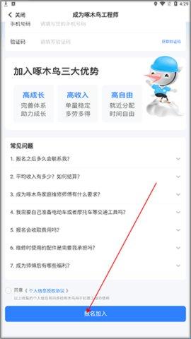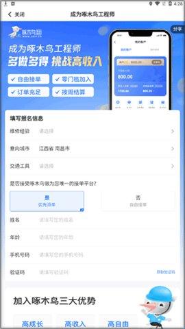 1、打开啄木鸟工程师版接单app后,点击申请入驻按钮。