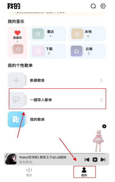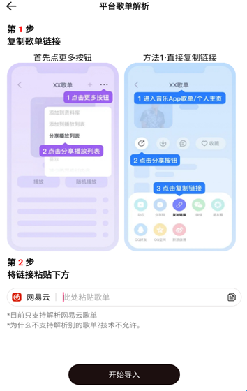 软件目前只支持解析网易云歌单下载并打开软件进入我的,点击一键导入歌单
