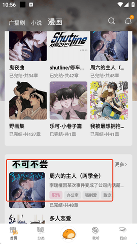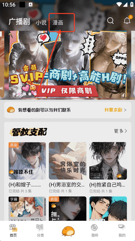 1、首页界面上方会有“漫画”字样,点击后就会自动切换到漫画中。