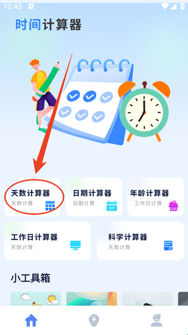 1、进入软件后直接点击“天数计算器”。