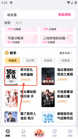 1、来到追甜app仓库中,在多种类型小说中,选择一本自己想看的小说内容。