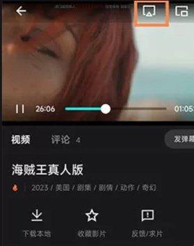 2、进入笔盒App播放影片,点击播放页面右上角小电视按钮,确保APP与电视在同-Wi-Fi下。