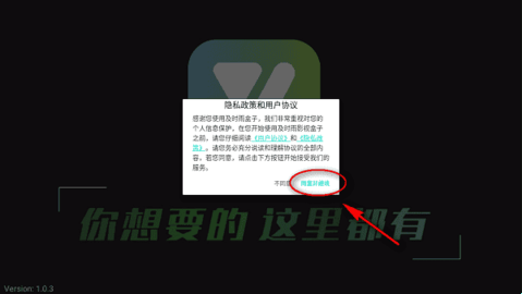 1、用户在安装及时雨盒子app的时候,需要点击新人注册的权限,点击“同意”。