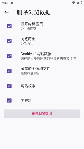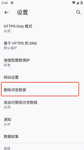 3、在设置页中找到【删除浏览数据】,点一下。