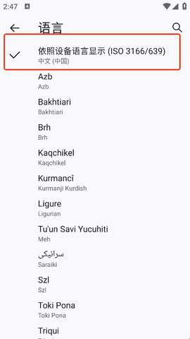 2、然后在语言列表中找到“中文”,选择就能设置成中文模式了。
