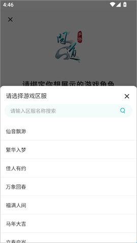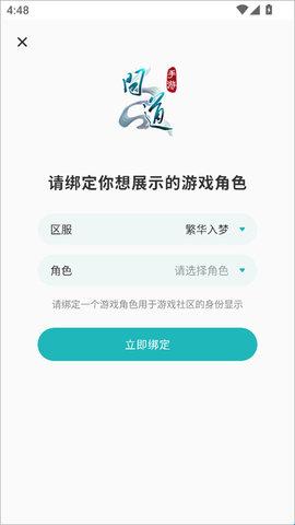 3、点击“绑定角色”,选择对应的游戏服务器,输入游戏角色名。