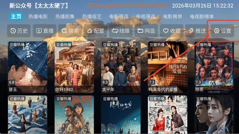 1、畅梦影视tv首页界面中,直接在功能区中点击最右上角的“设置”。