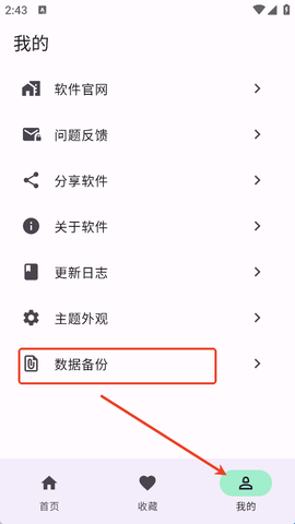 1、在简软app“我的”界面中找到一个叫“数据备份”的工具。