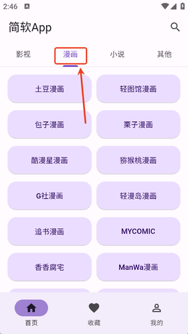 1、首页界面中,用户一定要将类型选择为“漫画”之后才可以选择漫画。