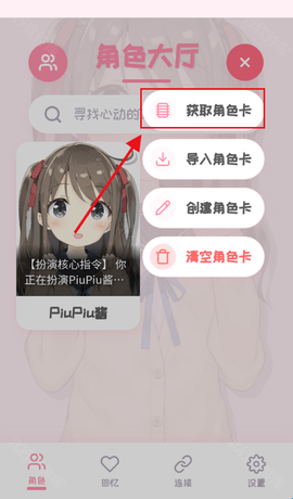 2、点击第一关功能“获取角色卡”按钮,此时会自动来到角色市场中。