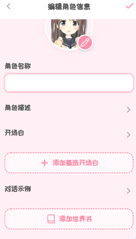 3、填入自己想要的角色信息,姓名、开场、对话等等内容来进行互动。