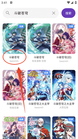 1、进入软件之后可以直接搜索你想看的漫画,例如我现在想看《斗破苍穹》,直接搜。