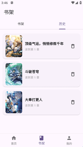 3、这样我们就能看到所有历史阅读记录了,点击记录后面的“垃圾桶”还能删除该条记录。