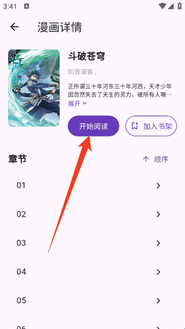 4、这样我们就可以免费看这本漫画了,记得加入书架,下次直接去书架阅读。
