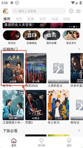 1、首页界面闲逛一番,将想要追的剧直接点击一下打开内容。