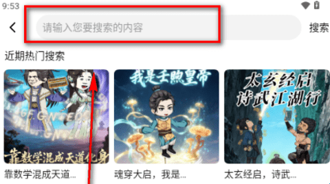 1、看看动漫首页最上方有一个“搜索”按钮,点击直接进入。