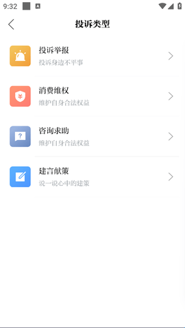 2、选择你的投诉类型。