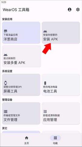 2、打开工具箱,进入功能界面,找到并点击“安装APK”选项。