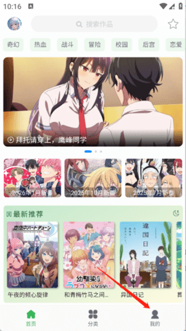 漫岛动画app首页界面右下角有个“我的”点击切换。