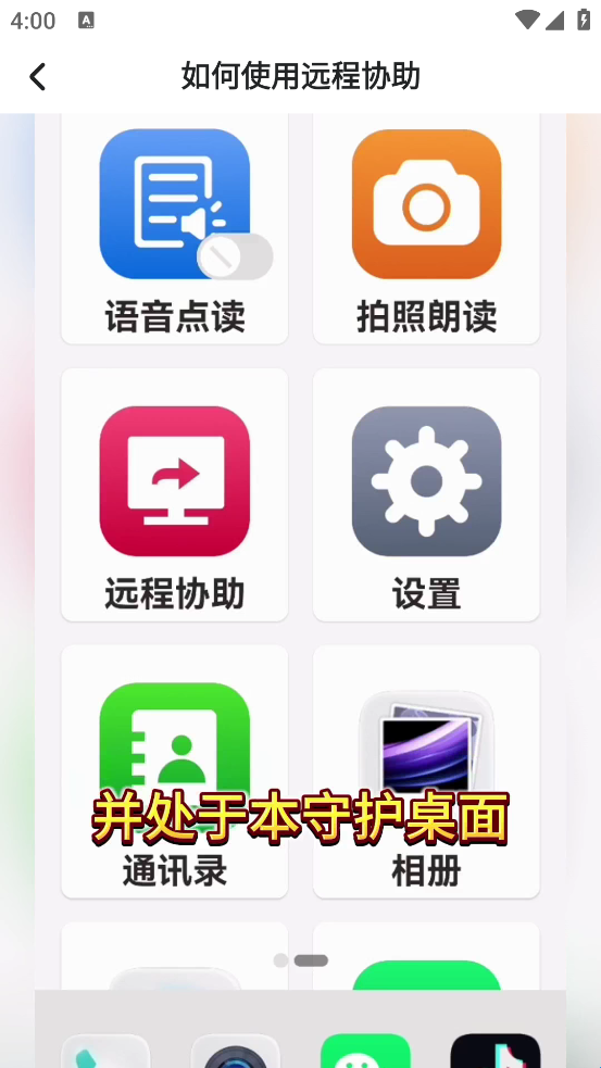 长辈在接受邀请后,就可以可以通过远程操控到长辈的手机桌面了。