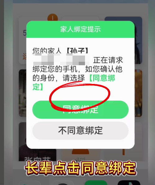 进入到远程控制端后用户点击长辈的名称后会出现弹框,全部点击同意即可。