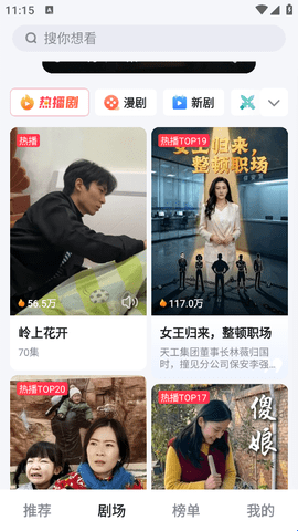1、进入软件后我们直接来到“剧场”,在这里寻找想看的短剧。