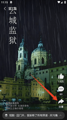 2、找到后进入播放页,然后点击右下方分享按钮。