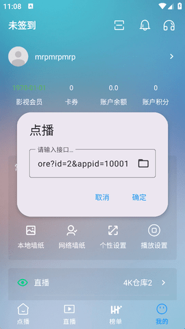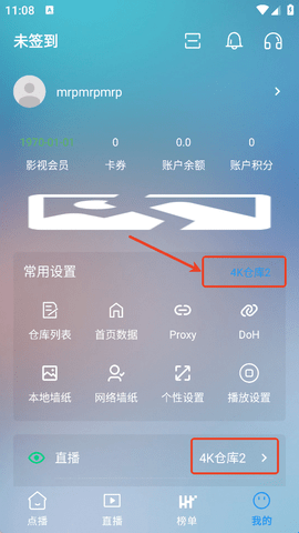 1、在“我的”界面中点击带有“4K仓库”的按钮就可以看到自带的线路。