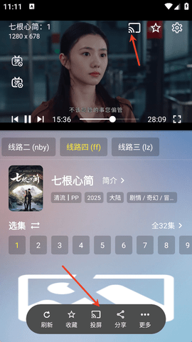 2、播放画面有两处有投屏按钮,点击画面右上角,还有最下方的“投屏”都能进行投屏。