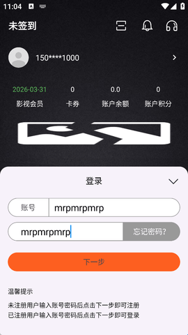 注意:未注册用户输入账号密码后点击下一步即可注册