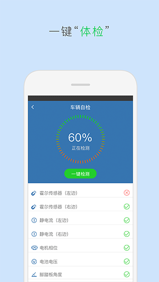 4、注册完成后进入主界面,应用会自动开启蓝牙以连接设备,可查看累计里程、本次里程等数据,同时可操作设备模式等功能。