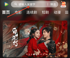 首页影视界面最上方有一个“搜索”按钮,这里输入关键字可以获取影视内容。