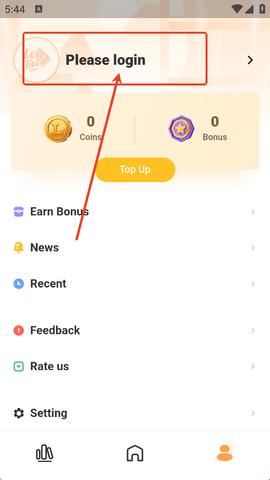 1、来到LoloBun中后,点击小人来到个人中心,在点击上方的“Please login”。