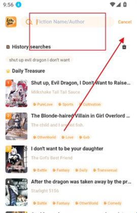 3、用户可以来到搜索框中输入想看轻小说的名称,输入之后,点击“Cancel”来搜索。