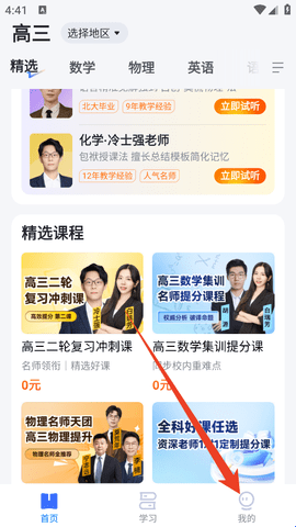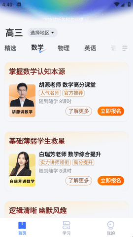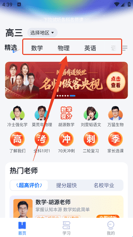 1、进入软件后完成登录,然后在首页选择要报课的学科。