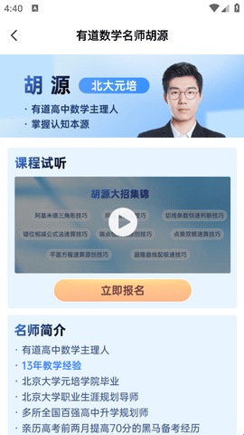 3、直接点击进入视听,试听完如果觉得不错直接点击下方的“立即报名”去填写信息。