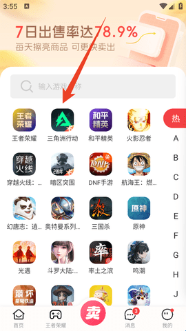 1、进入软件后直接点击下方的“卖”。