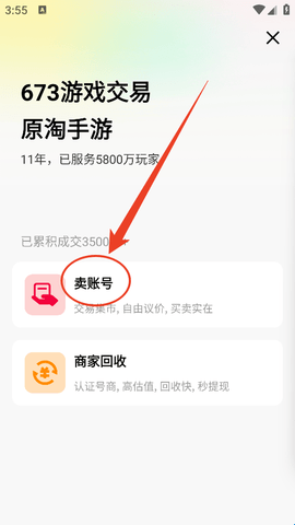 3、点击“卖账号”。