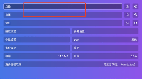 2、点击最上方的“点播”按钮,点击空白对话框,就能直接添加新的影视源。