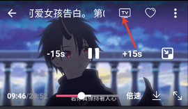 视频播放画面右上角就会有“TV”符号,点击就会快速跳转到投屏画面。