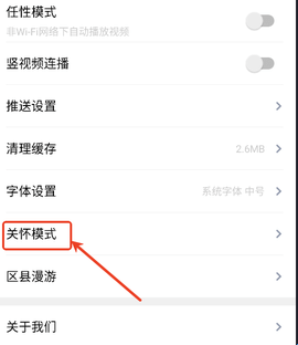 2、设置详细界面,倒数第三个就是“关怀模式”用户点击就会进入。