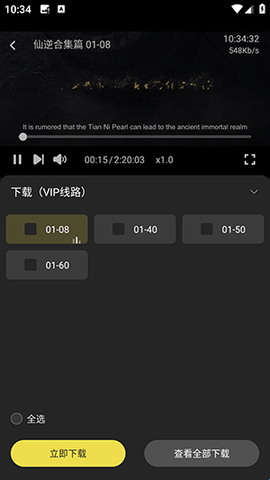 3、画面开始播放之后,点击最下面的下载按钮,选择需要的集数即可。