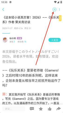 2、超多类型,从漫画到轻小说各类题材在工具中,轻松展现,用户也会在这里发布观看心得。