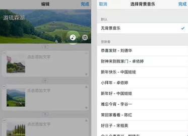 5、点击“音符”图标,可以给文章设置一首背景音乐。因为在上班、深夜等情况下突然放出声音比较吓人,我们建议你谨慎添加音乐。
