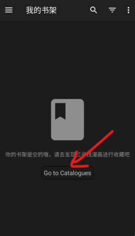 1、来到MangaDex我的书架中,内容空荡荡,点击中间的“Go to Catalogues”。
