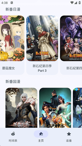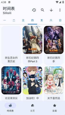 时间表界面,根据一个星期的时间,将最近更新的动漫按照顺序进行排列为大家选择。